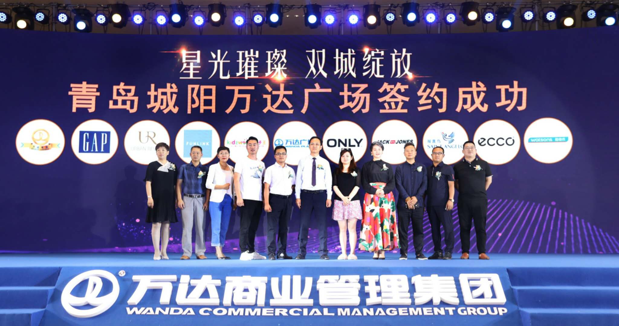 城阳万达广场商管公司总经理杨宝生先生作为签约代表与万达影城、GAP,UR,FUNLINK,孩子王,ONLY,JACK&JONES、报喜鸟、ECCO、屈臣氏等国内外知名品牌现场正式签约。