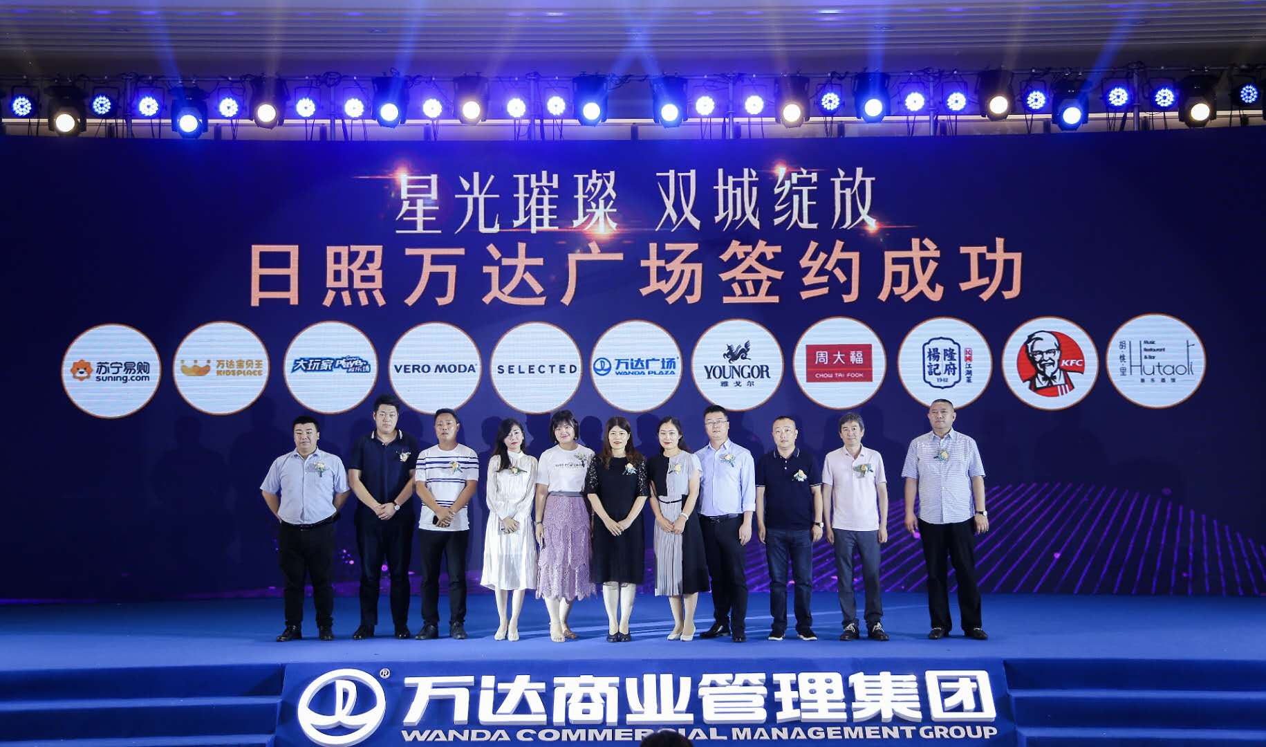 日照万达广场商管公司总经理高月云女士作为签约代表与苏宁易购、万达宝贝王、大玩家、VERO MODA、SELECTED、雅戈尔、周大福、杨记隆府、肯德基、胡桃里音乐餐厅等国内外知名品牌现场正式签约。