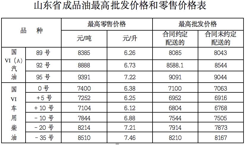 备注:1成品油生产经营企业供国家储备用汽、柴油(国标VI准品)价格分别为每吨7645元和6660元。供渔业、林业、农垦用汽、柴油供应价格暂按供国家储备用油价格执行。