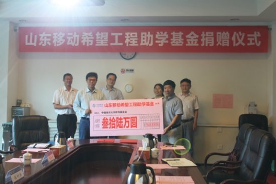 7月10日下午,2019年度山东移动希望工程助学基金捐赠仪式在中国海洋大学举行。中国移动山东公司出资36万元,联合共青团山东省委员会希望工程办公室设立“山东移动希望工程助学专项基金”,用于救助中国海洋大学品学兼优、家庭困难、创新突出的在校大学生。