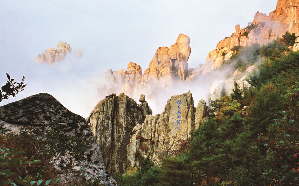 崂山位于青岛市东部,最高峰名为巨峰,崂山以其雄伟、壮观、奇特、秀丽成为了著名的道教名山。崂山东、南两面濒临黄海,因此有“海上第一名山”的美名。