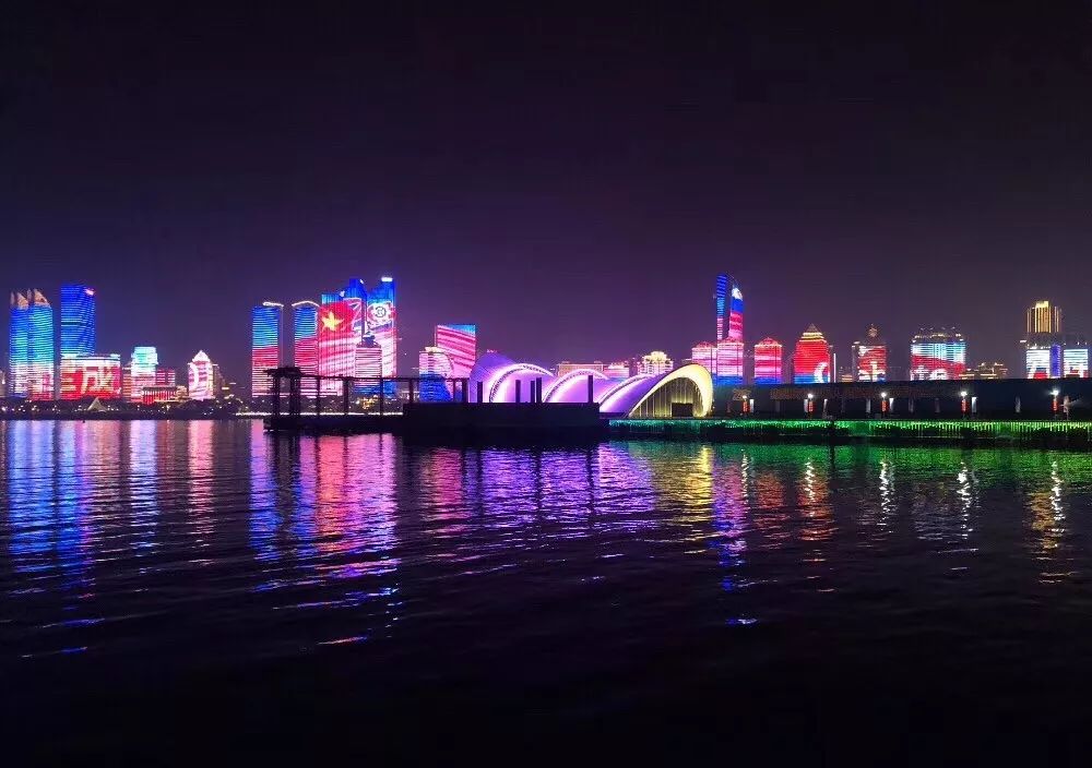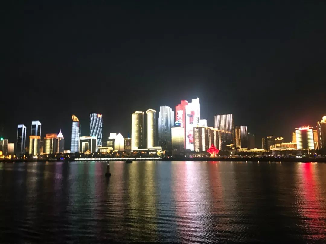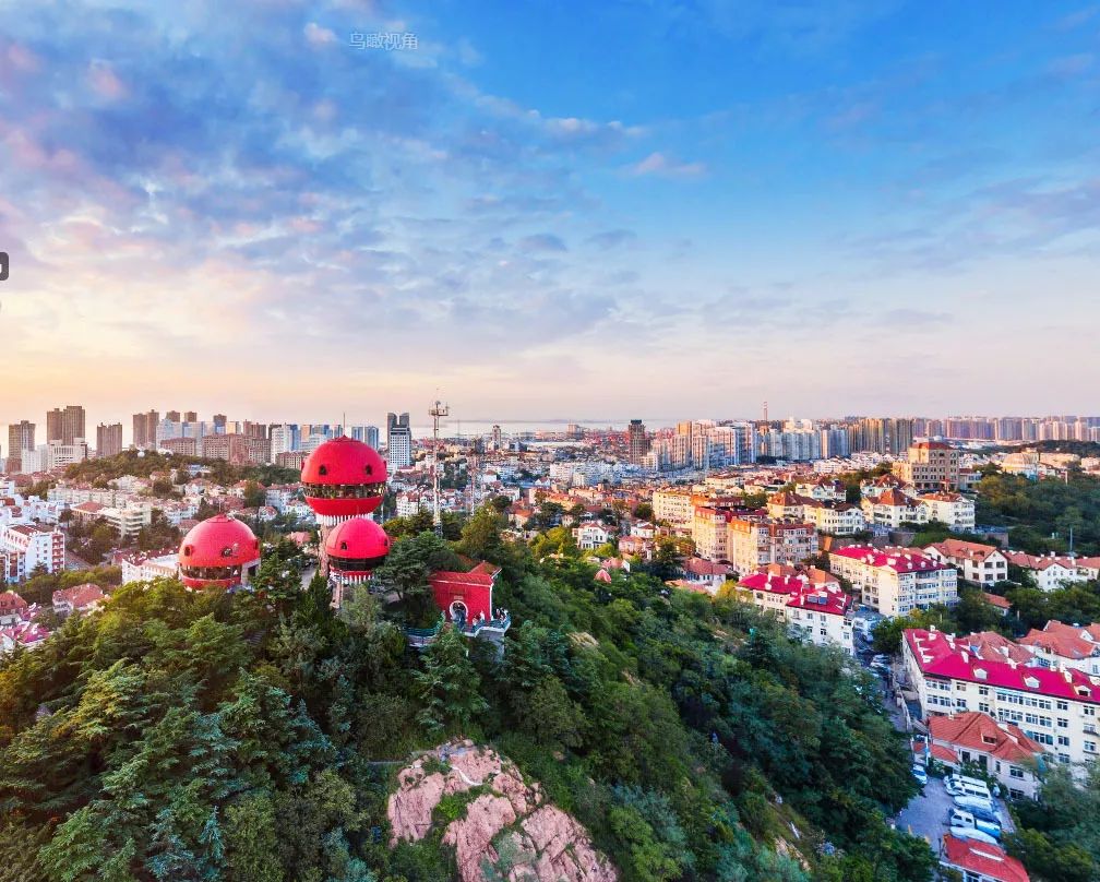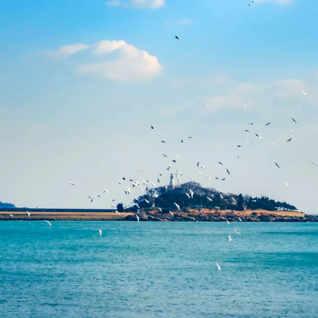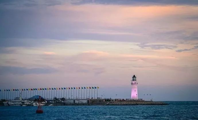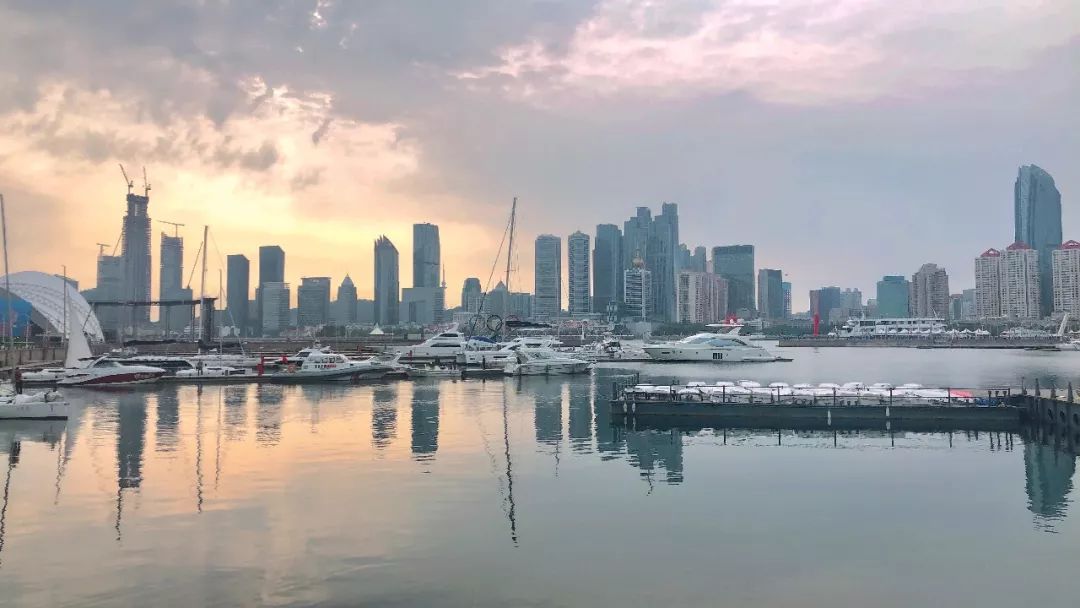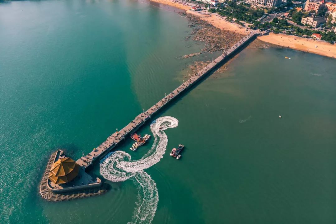乘游船眼眸掠过小青岛上的皎洁白塔,五四广场上的风拂过耳际的碎发。