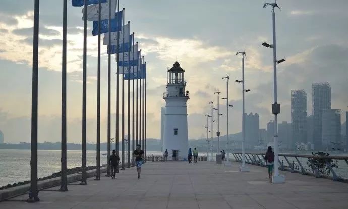 而且这里距离五四广场非常近,人少,安静,可以看到灯光秀全景,坐在长椅上安安静静吹吹海风,发发呆,这才是生活的真意。