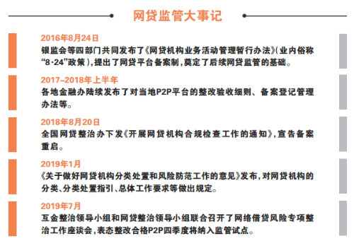 2019年7月,互金整治领导小组和网贷整治领导小组联合召开网络借贷风险专项整治工作座谈会。会议明确,下一阶段要将稳妥有序化解存量风险、多措并举支持和推动机构良性退出或平稳转型作为重点,引导绝大多数机构通过主动清盘、停业退出或转型发展等方式实现风险出清。