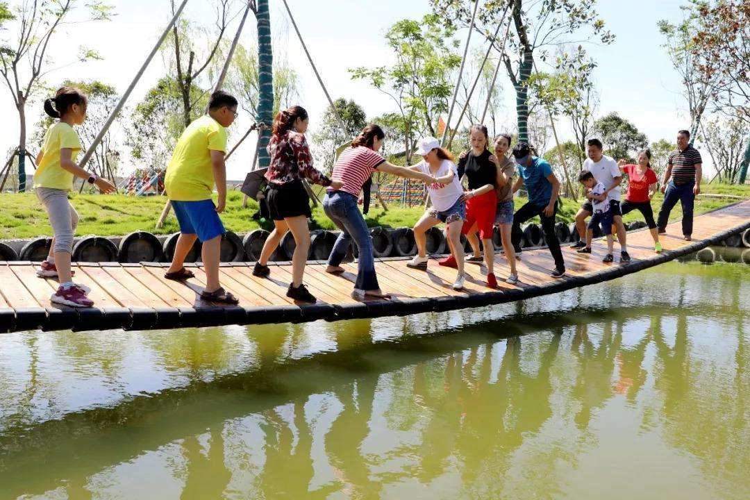 抖音大赛全民参与,网红桥上笑声不断。湿地公园特意打造了在抖音上爆火的晃桥两处,让游客亲身体验一把“网红桥”的惊险、刺激。