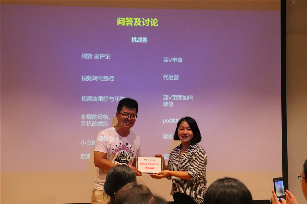 在提问环节,来自“青岛市市立医院”、“青岛吃货君”、“爱尚青岛”、“CCTV发现之旅”、“西北工业大学青研院专业学位中心”等平台的抖音运营人就各自运营中存在的问题与李世东进行了一番探讨,得到了李世东以及都会文化MCN机构其他同事的耐心解答。