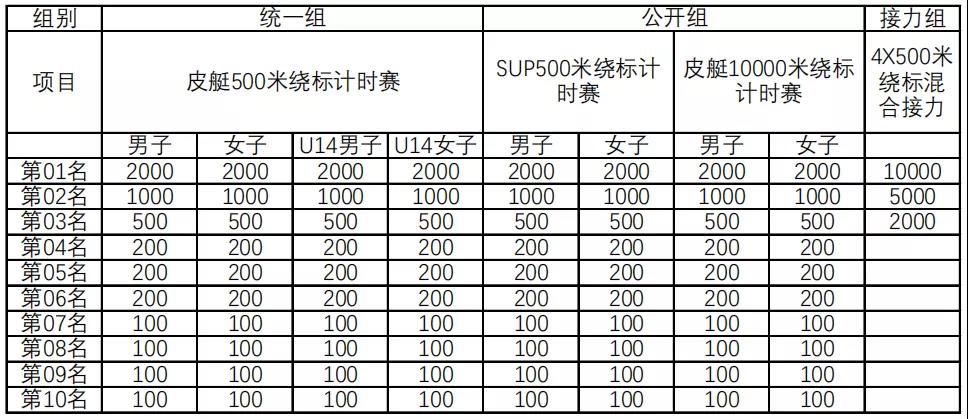 备注:统一组项目中比赛器材由大会统一提供,桨、救生衣可自带。3、公开组项目: