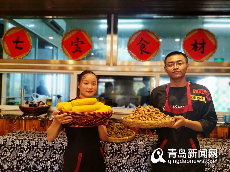 “我们希望让各地的游客吃上西海岸地道的庄户饭,找到小时候那妈妈的味道。”七宝菜馆相关负责人宋芳说道。走进菜馆,浓郁的乡村气息铺面而来,工作人员们正有条不紊地准备着晚上的食材。厨房案台上,摆满了各种食材,有粉条、辣酱、面粉等,据宋芳介绍,这些就是店里的镇店之宝——七宝食材,共有七种,是来自宝山镇特产,分别是庄户面粉、老面馒头、杂面面条、滕家粉条、凉制瓜枣、杨家辣酱、林子野茶,“这些食材都是采用最简单的制作方法制作而成,希望游客能从中感受到西海岸的乡土文化。”