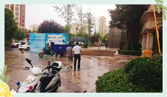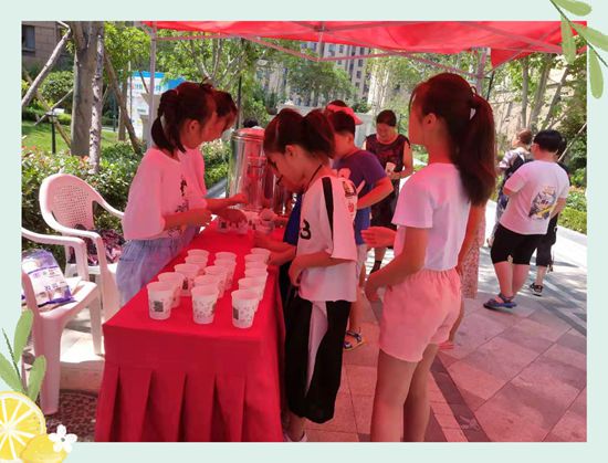 鑫江物业联合小业主组成的小义工,一起为业主免费发放自制绿豆汤,为业主带来一片清凉。