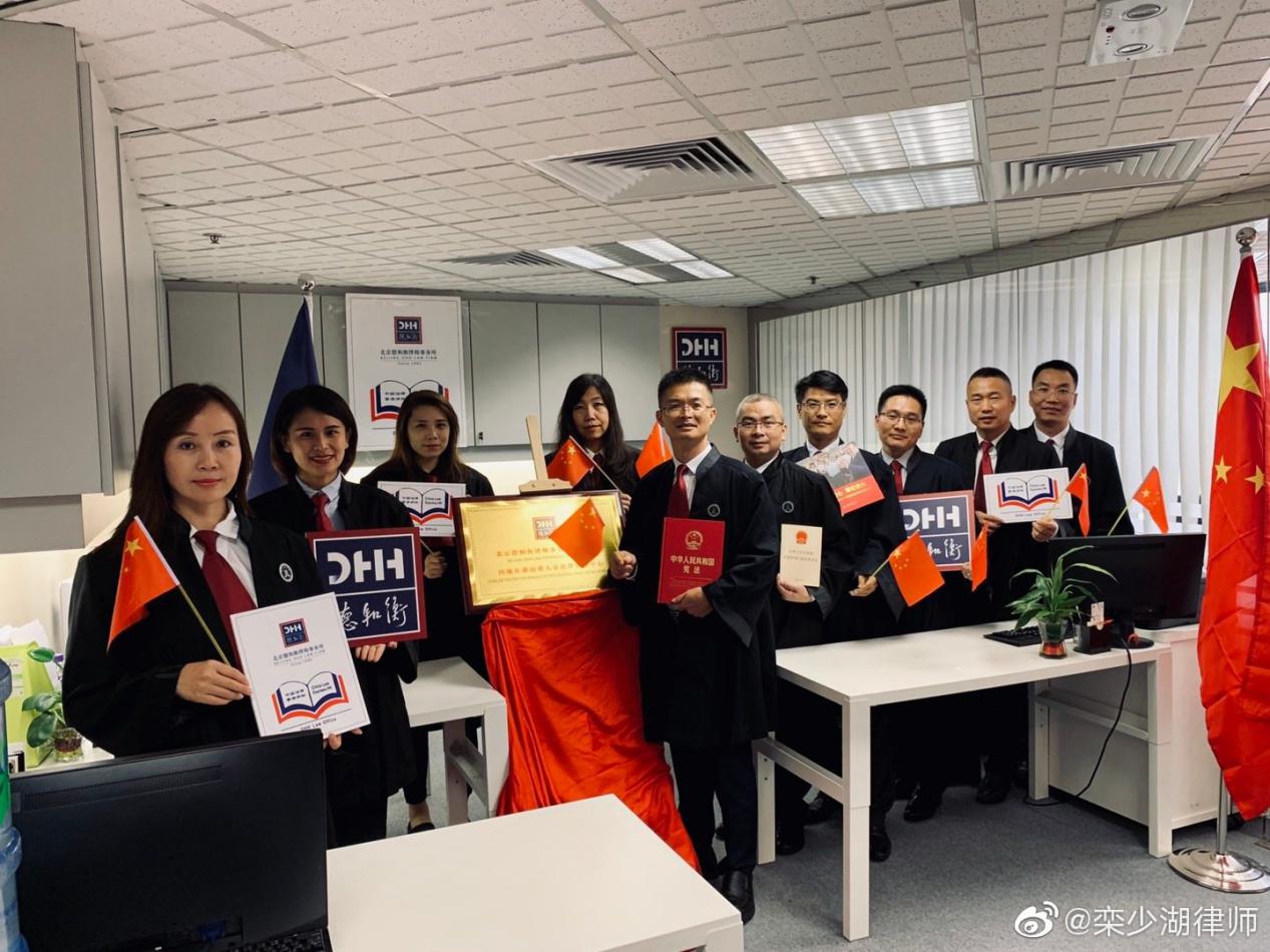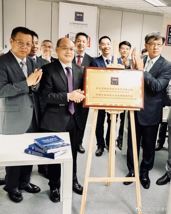 中央人民政府驻香港特別行政区联络办公室法律部部长刘春华和香港立法会议员、太平绅士何君尧律师及德衡律师集团主席栾少湖律师等出席揭牌成立仪式。