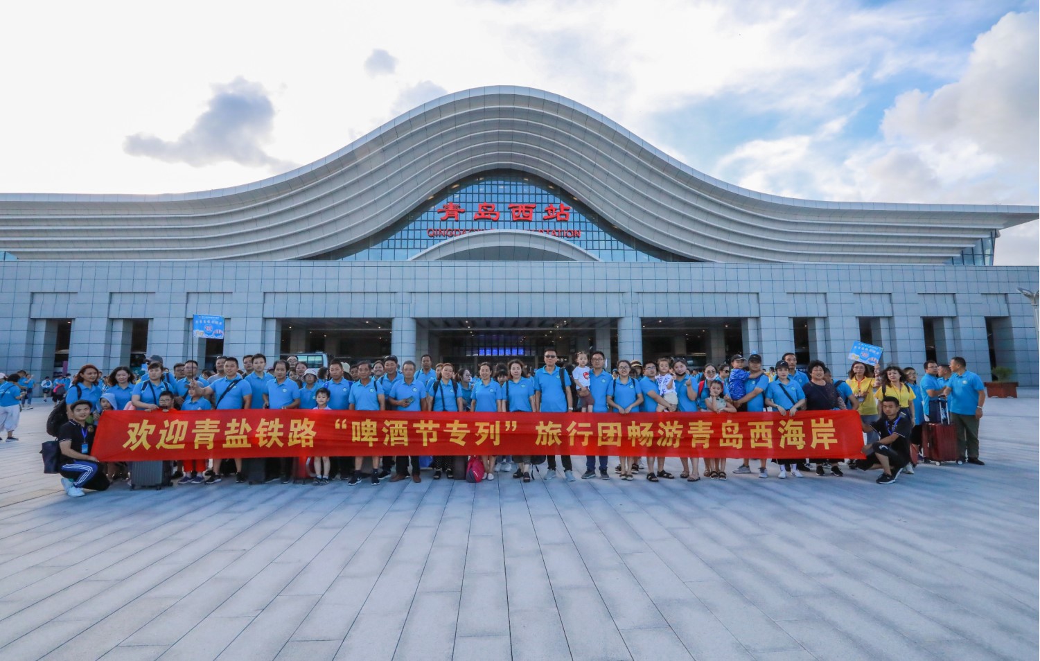 在青岛西站,青岛西海岸新区文化和旅游局联合青岛西海岸新区交通商务区、青岛西站等,在“啤酒节专列”抵达站台上举行了欢迎仪式。随后,“啤酒节专列”旅行团统一乘坐14辆旅游大巴,直接前往青岛西海岸新区金沙滩啤酒城参加第29届青岛国际啤酒节,在金沙滩啤酒城内观赏灯光焰火秀、艺术巡演、花车巡游等,并在啤酒大篷畅饮清爽啤酒、品味特色美食,尽情享受第29届青岛国际啤酒节的激情狂欢。