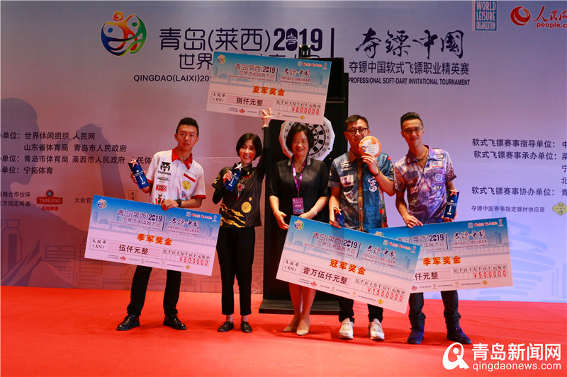 青岛新闻网8月17日讯 (记者 刘文超)2019夺镖中国·软式飞镖职业精英赛在青岛莱西九顶庄园顺利闭幕。经过一整天激烈的比赛,伍其富在决赛中顶尖镖手周莫默,比赛过程一波三折,伍其富以4:2拿到赛点,比赛进入关键的第7局,当伍其富剩下8分时,给了周莫默绝地反击的机会,周莫默顶住压力,以60、17*3、50的打法实现了161高拆,成功将比赛拖入第8局。不过,第8局中是伍其富的先手局,再没有给周莫默任何机会,一路领先,最终以5:3拿下本次赛事的冠军。周莫默惜败收获亚军。伍其富在赛后接受采访时表示,周莫默水平很高,私下李两人也是非常好的朋友,经常组队参加世界大赛。