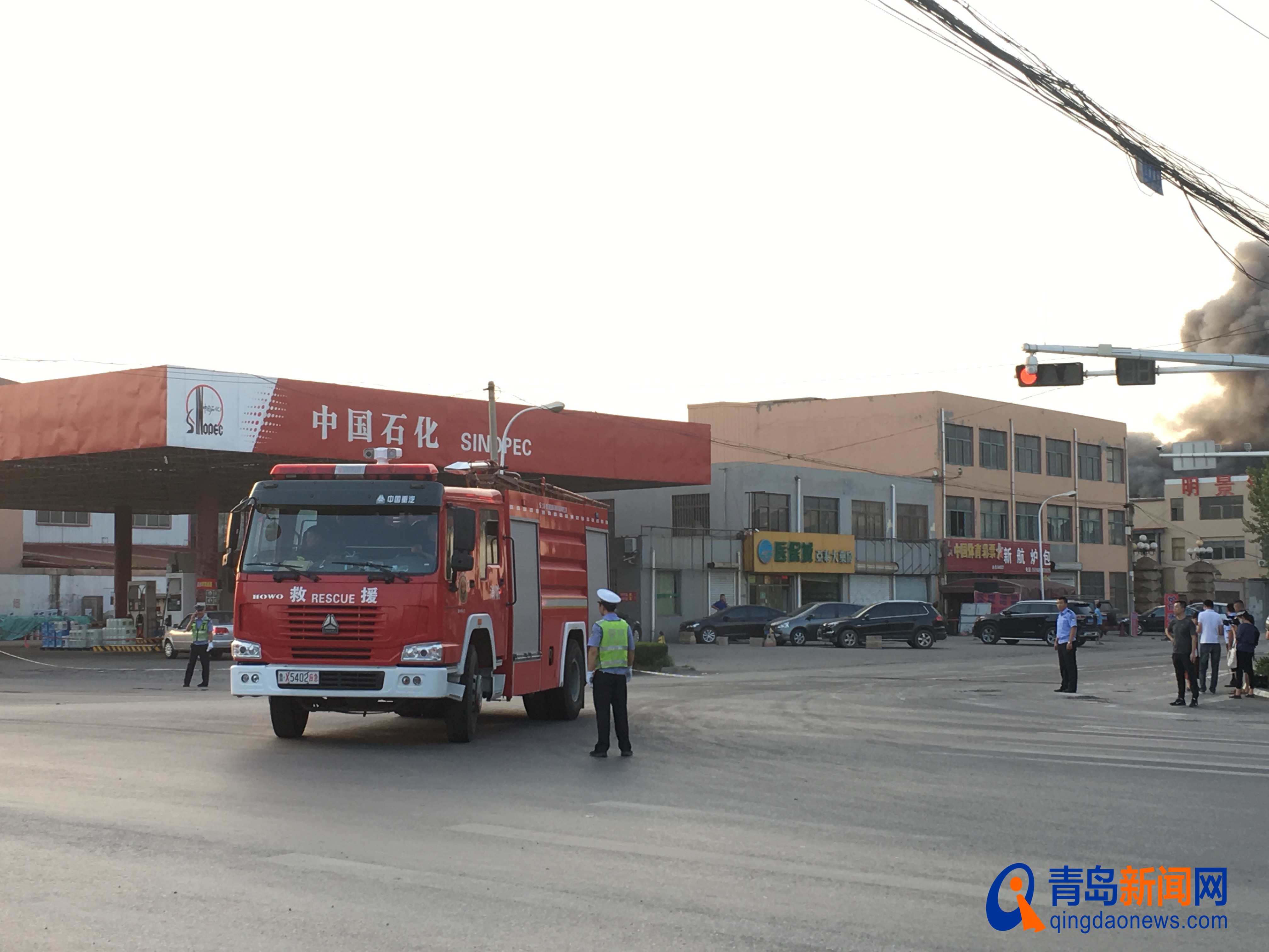当天下午17时30分许,青岛新闻网记者在现场看到,城马路和淮涉河二路路口已经拉起警戒线,南向北方向被警方封锁,路中央和道路四周均安排警力在疏导交通,引导过往车辆改道以及让消防车第一时间通过。在该路口还有一处中石化加油站,也被警方临时封锁,处于停业状态,该加油站距离火灾现场约300米。