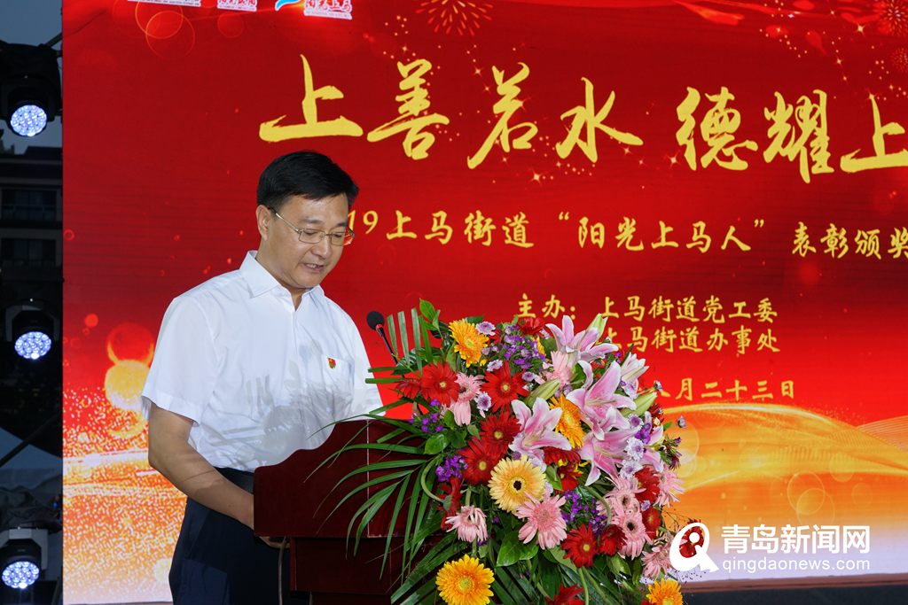 青岛新闻网8月23日讯(记者 姜红翠)上善若水 德耀上马——2019上马街道“阳光上马人”表彰颁奖典礼8月23日晚在城阳六中操场盛大举行,历经数月评选产生的88位上马街道道德模范人物走上舞台,领取荣誉奖牌、《阳光上马人纪念邮册》及小说,2019年“阳光上马人”评选迎来万众瞩目的欢聚庆典。