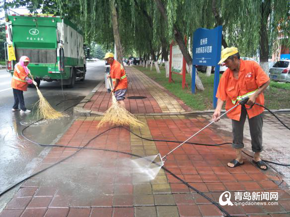 市南区加强旅游旺季期间前海一线景区景点、公交车站、地铁口等人流量较大区域卫生清理力度,实施延时保洁。李沧区组织做好死树枯枝、树木扶架、绿地卫生工作,组织清理遮挡交通标志的徒长树枝。