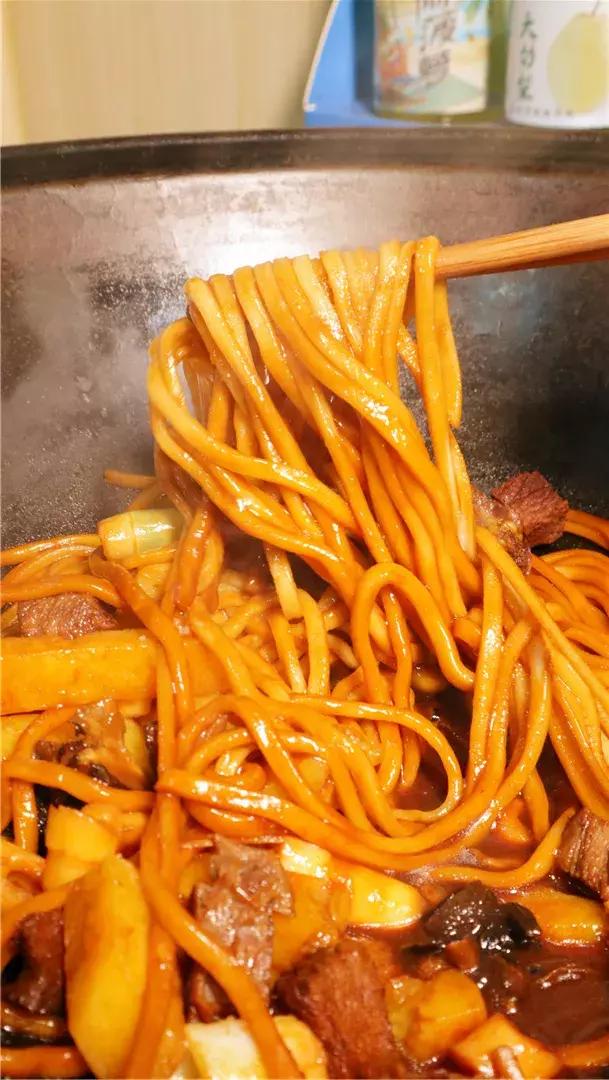 在青岛,焖面的派系还蛮多的。北方省份的风格也各有不小的区别。今天安利的这家店,口味更偏向山西那边的做法。经典款是排骨土豆芸豆焖面,还有秘制牛肉、秘制鸡腿等口味的焖面。