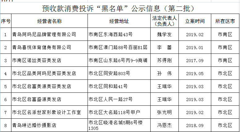 记者从市大数据局获悉,近日,市大数据局在“信用中国(山东青岛)”网站向社会发布第二批“预收款消费投诉'黑名单'”,该名单中的“跑路”商户信息被纳入相关企业、个体工商户及其负责人的信用记录,并被推送到全国信用信息共享平台进行失信联合惩戒。
