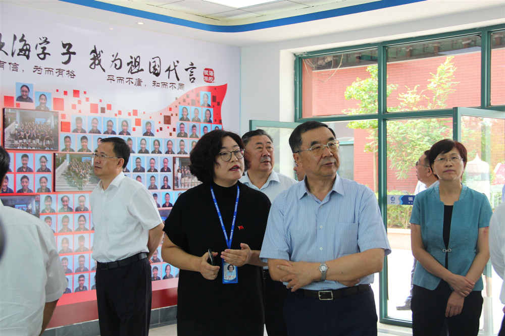 调研过程中,宋远方一行先后参观了银海学校海景图书馆、首席专家工作室、海洋主题文化楼、多功能实验室、海洋教室、全海景操场等教育教学设施,其独具特色的海洋风格,红色正能量的文化内涵吸引了领导们频频驻足,并对校园充分利用空间,为学生打造舒适宜人学习环境的做法高度点赞。