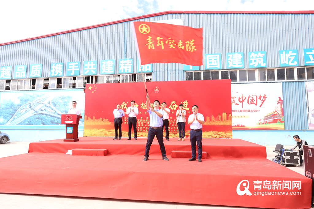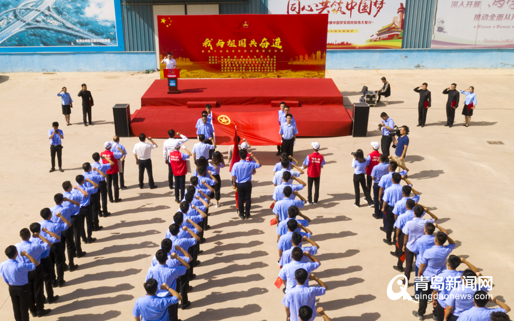 青岛新闻网9月19日讯(记者 姜红翠 通讯员 吴晓菲)为庆祝中华人民共和国成立70周年,唱响奋进新时代的青春主旋律,9月19日,由共青团青岛市委主办,中建八局四公司团委承办,中建筑港团委、中建三局山东分公司团委、中建八局一公司团委、中建八局二公司团委协办的“我与祖国共奋进——国旗下的演讲”特别主题团日活动在青岛新机场高速项目开展,通过“沉浸式”的仪式教育,激励和引导广大团员青年大力弘扬以爱国主义为核心的伟大民族精神。