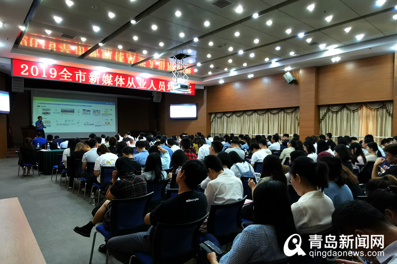 青岛新闻网9月24日讯(记者 黄晓)为进一步提高青岛市新媒体从业人员的业务水平,促进新媒体从业人员间的学习与交流,9月24日,市委网信办在青岛出版大厦举办了2019年全市第二次新媒体从业人员培训班,来自产业、高校的知名专家和自媒体达人围绕5G赋能新媒体、新媒体新闻采写等内容进行了分享,来自中央和省驻青新闻网站、属地新闻网站以及自媒体代表等200余名新媒体从业人员参加了培训。