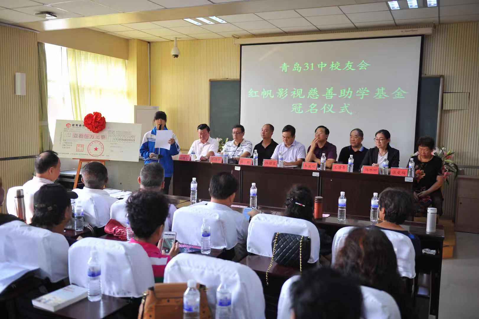 冠名仪式上,由青岛慈善总会财经分会副会长兼秘书长杨进军主持。青岛31中校友会副秘书长张爱梅简要介绍原青岛31中校友基金会概况。青岛市慈善总会财经慈善分会副会长李英明宣读青岛31中校友会红帆影视慈善助学基金理事会成员名单(会长、副会长、秘书长等)。青岛31中校友会红帆影视慈善助学基金理事会理事长黄耀华宣读《青岛31中校友会红帆影视慈善助学基金章程》。青岛市文化艺术界慈善分会副秘书长、青岛31中校友会红帆影视慈善助学基金理事会名誉理事长王清泰,向青岛市慈善总会、财经慈善分会交接青岛31中校友会红帆影视慈善助学基金善款。市慈善总会募捐部部长张鹏向基金会颁发证书。青岛31中校友会红帆影视慈善助学基金理事会副理事长兼秘书长、青岛红帆影视有限公司总经理蒋立勇讲话。青岛31中学受益学生代表和家长代表发言。