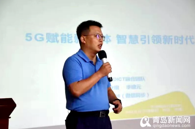 “4G改变生活,5G改变社会”,山东移动5G专家、高级内训师李建元以《5G赋能新媒体智慧引领新时代》为题,介绍了5G相较4G的提升,并结合应用案例向学员们分享了5G如何赋能十大行业。