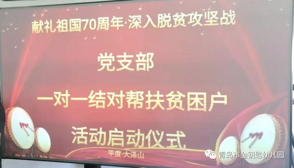 青岛新闻网讯 2019年是新中国成立70周年,也是脱贫攻坚的决胜之年。为献礼祖国70周年,贯彻习总书记关于“深入精准扶贫”的重要讲话精神,践行“不忘初心,牢记使命”主题教育,充分发挥金幼党员的先锋模范作用。9月26日,青岛市金钥匙幼儿园党支部与其它七个党支部联合开展了“平度大泽山镇一对一精准帮扶”活动。