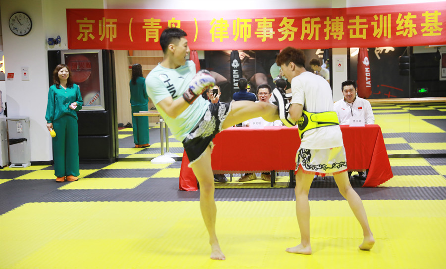 京师(青岛)律师事务所主任张需聪介绍,律师工作压力大、负荷重,设立散打训练基地首先是帮助律所全体成员搭建一个强身健体的平台,在面对社会不法分子时,有利于律师们正当防卫,保护自身安全;在遇到他人被暴力犯罪侵害时,也能够挺身而出,见义勇为,为社会安全、稳定贡献力量。
