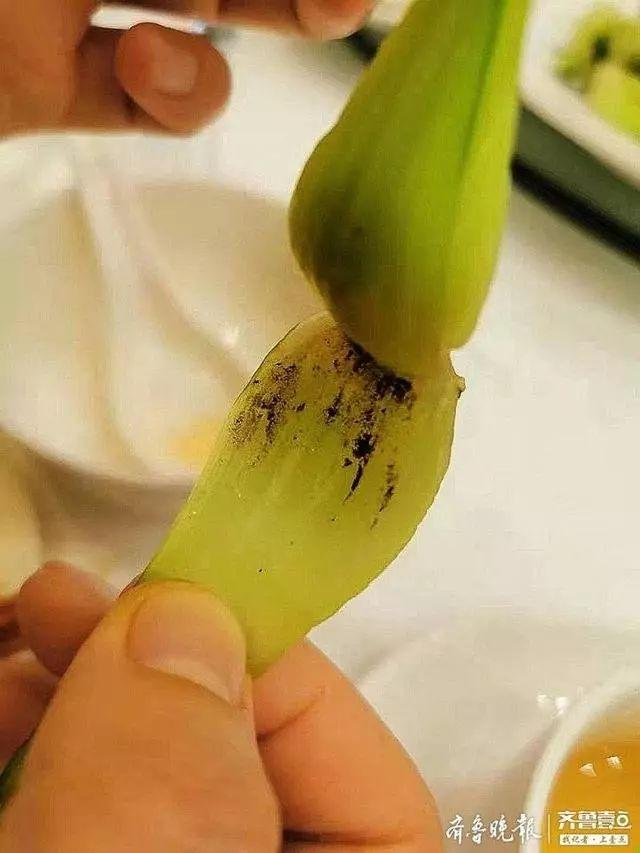 随后,孙女士跟朋友一起对盘中剩余的油菜进行了检查,发现盘中大部分油菜都存在没有清洗的情况,尤其是将整根的油菜掰开后,油菜的根部和夹层都沾满了黑泥土。孙女士表示,为了不影响现场气氛,当晚没有找酒店进行投诉。