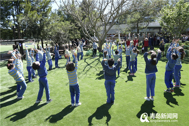 此次克利伯比赛船员参观的当地学校名叫林边学校,欢迎仪式上,孩子们以一场集体的瑜伽舞蹈表演开始了此次活动,还邀请船员代表参与其中。