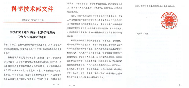 青岛新闻网10月22日讯(记者 潘松君 通讯员 崔晓明)科技特派员制度推行20周年总结会议10月21日在北京召开,对92名科技特派员和43家组织实施单位进行了通报表扬,青岛市有1名科技特派员获得表扬。