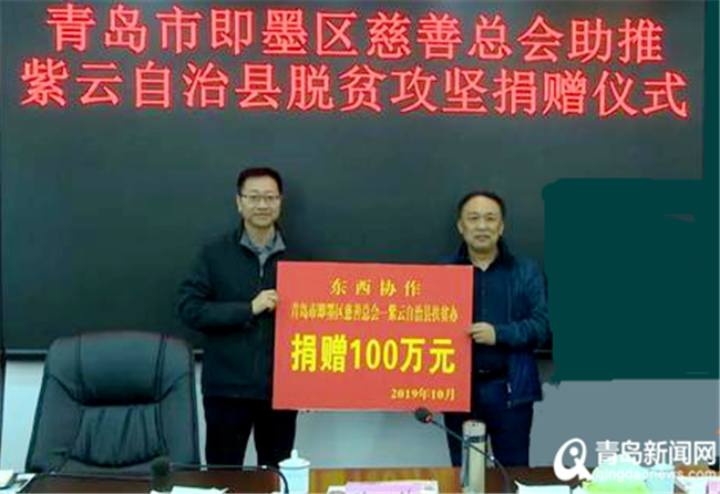 随后举行的捐款仪式上,即墨区慈善总会向紫云县捐赠慈善资金100万元。