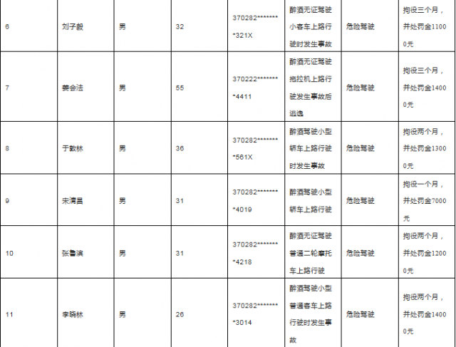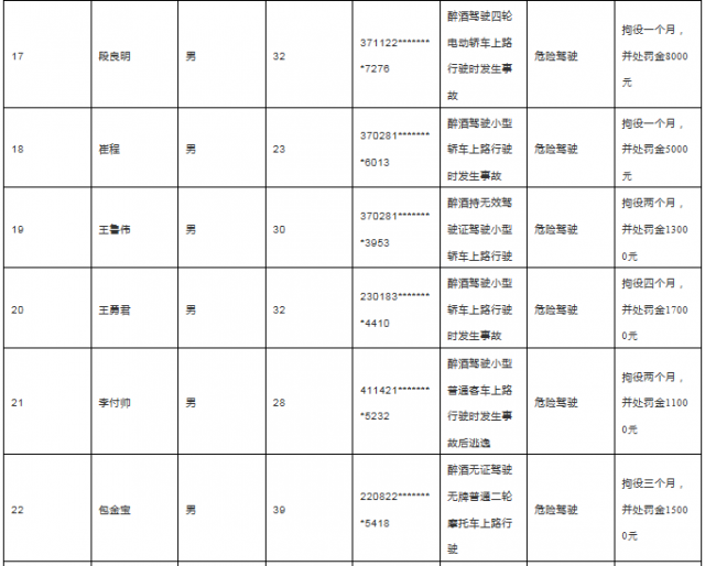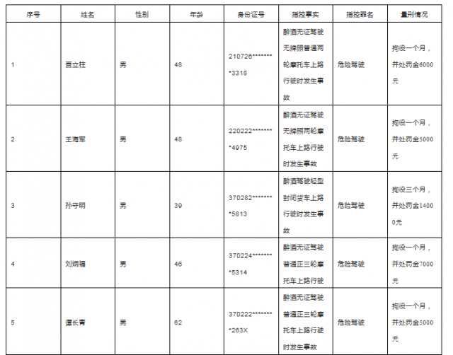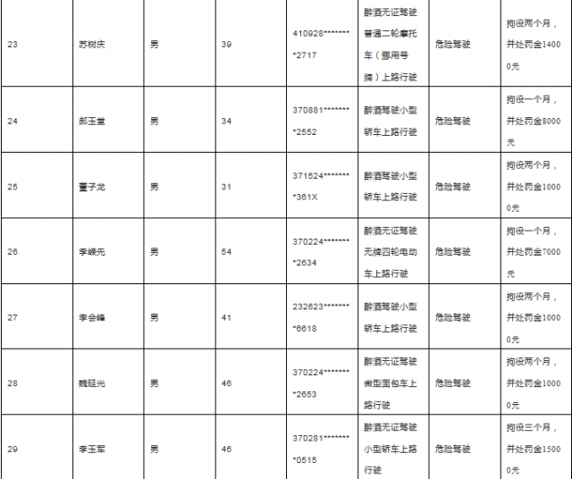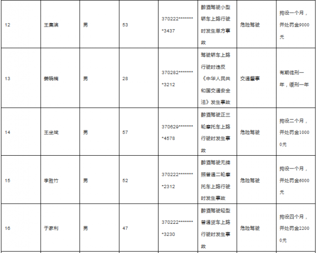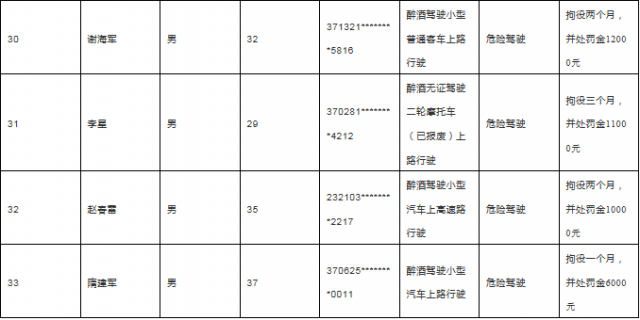 青岛公安实名曝光:33人因危险驾驶、交通肇事被判决