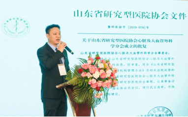 山东省研究型医院协会副秘书长王兴步教授代表山东省研究型医院协会会长胡三元教授宣读关于同意批复成立心脏及大血管外科分会的文件。