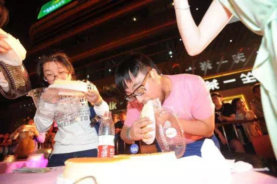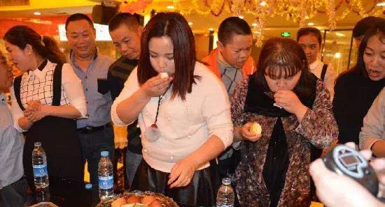 比赛共进行2轮,每轮邀请4组选手上台参与,工作人员准备好道具及糕点拼盘放于参与者手中,参赛选手需蒙眼吃完盘中糕点,每组在蒙眼状态下优先吃光者获胜,获得奖品。▼