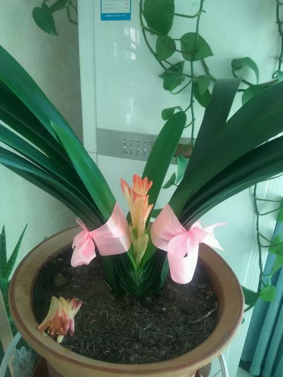 所以养君子兰,花盆不能太深,种的时候把土壤填满,叶子高出花盆盆口,这样有利于通风,浇水也不容易烂根。