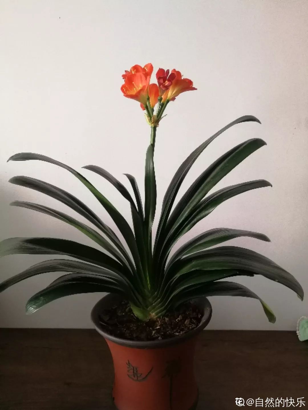 移到常温环境后,第一次少浇点水,第二次正常浇水,不用施肥,2周左右就能看到花苞,经过低温休眠的君子兰,蹿箭有力,开花势如破竹。