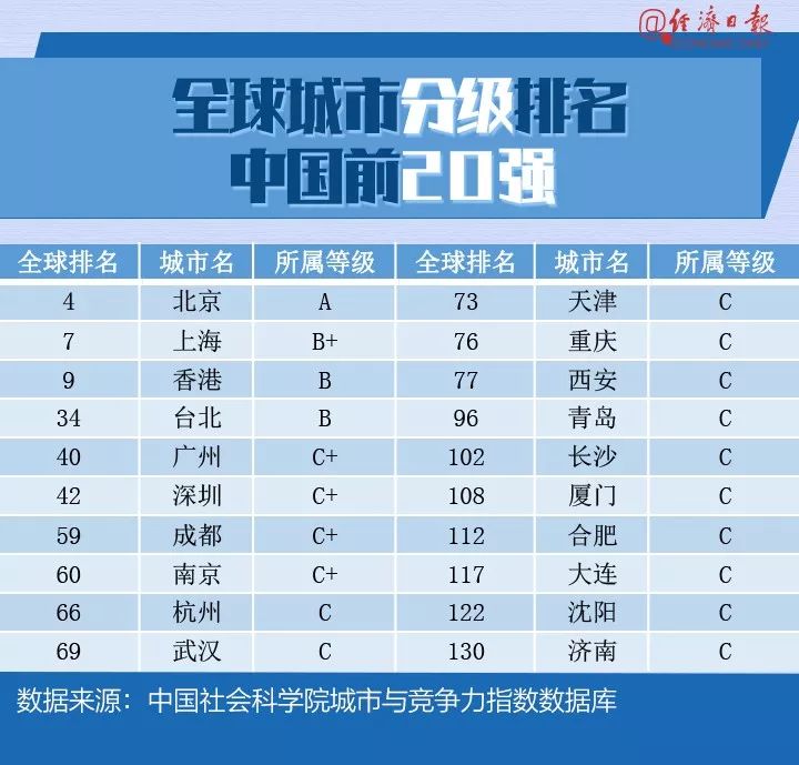 从城市分级中不难看出,发达国家城市在全球城市体系中仍然具有优势地位,但以中国为代表的发展中国家城市正在迅速崛起。俗话说,先胖不算胖,后胖压塌炕!客观讲,当前中国城市的竞争力在全球范围内仍有进一步提升的空间,但相信未来会有更多国内城市冲入全球竞争力榜单。上榜的别骄傲,没上榜的别气馁,中国的城市发展一定会越来越好!经济日报”微信公众号