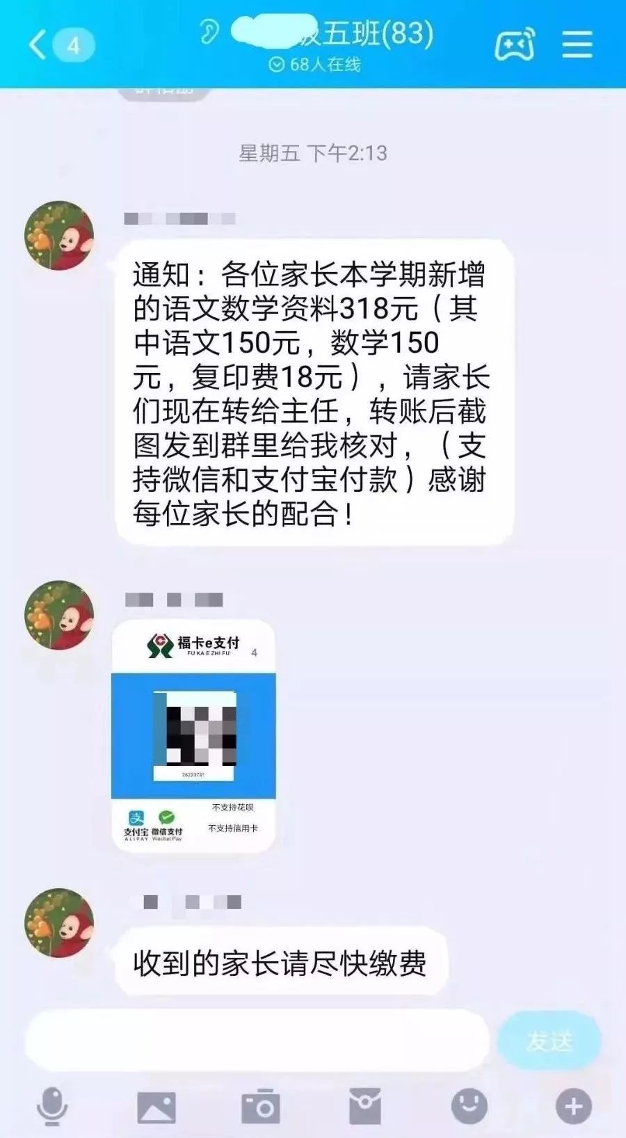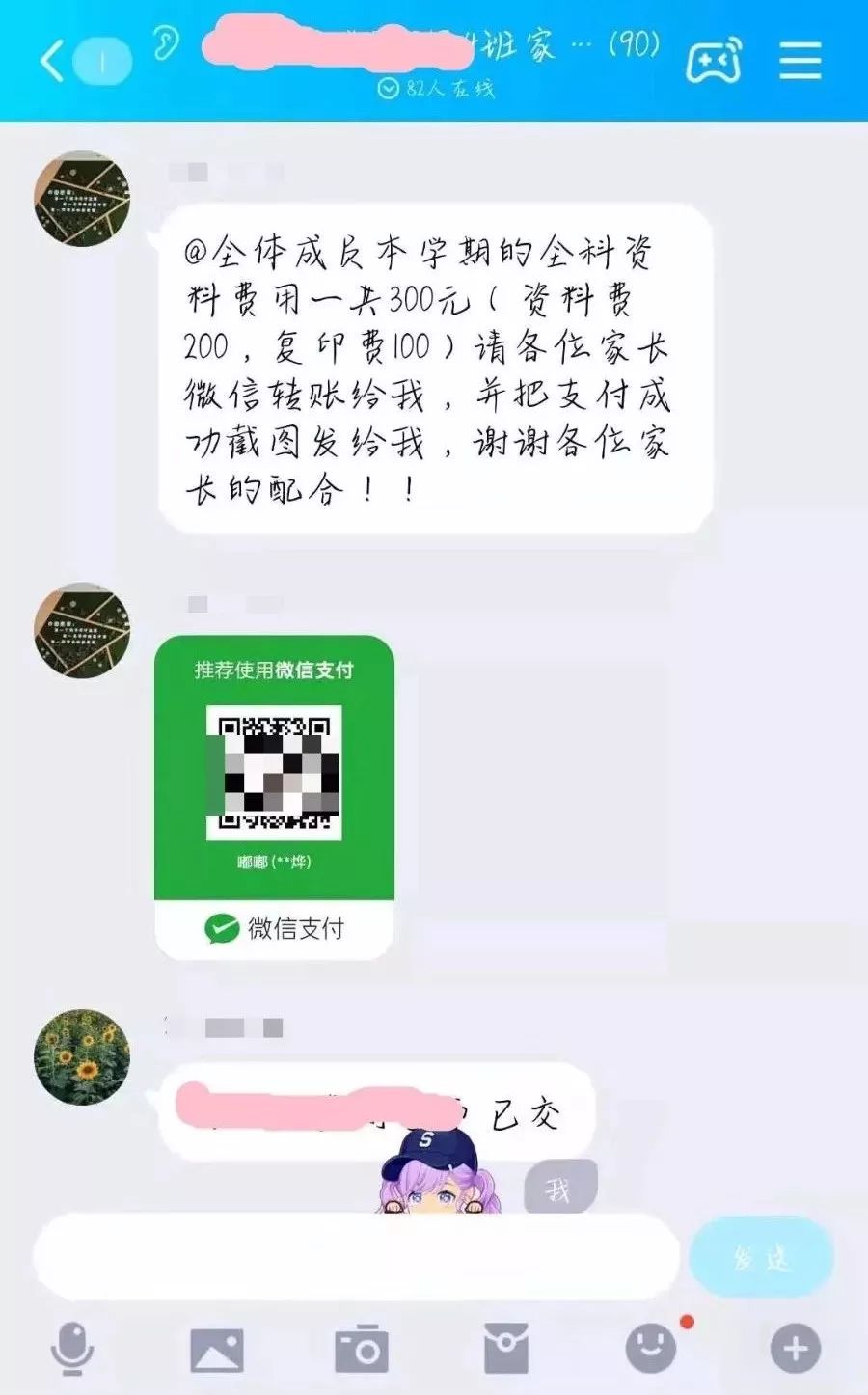 为了加强与学生家长的沟通很多班主任都建立了QQ群或者微信群以便及时通报信息但最近不少班级群出现了“班主任”@全体家长的消息比如这个有90名成员的班级群“班主任”要求收取300元材料费并直接发来收款二维码