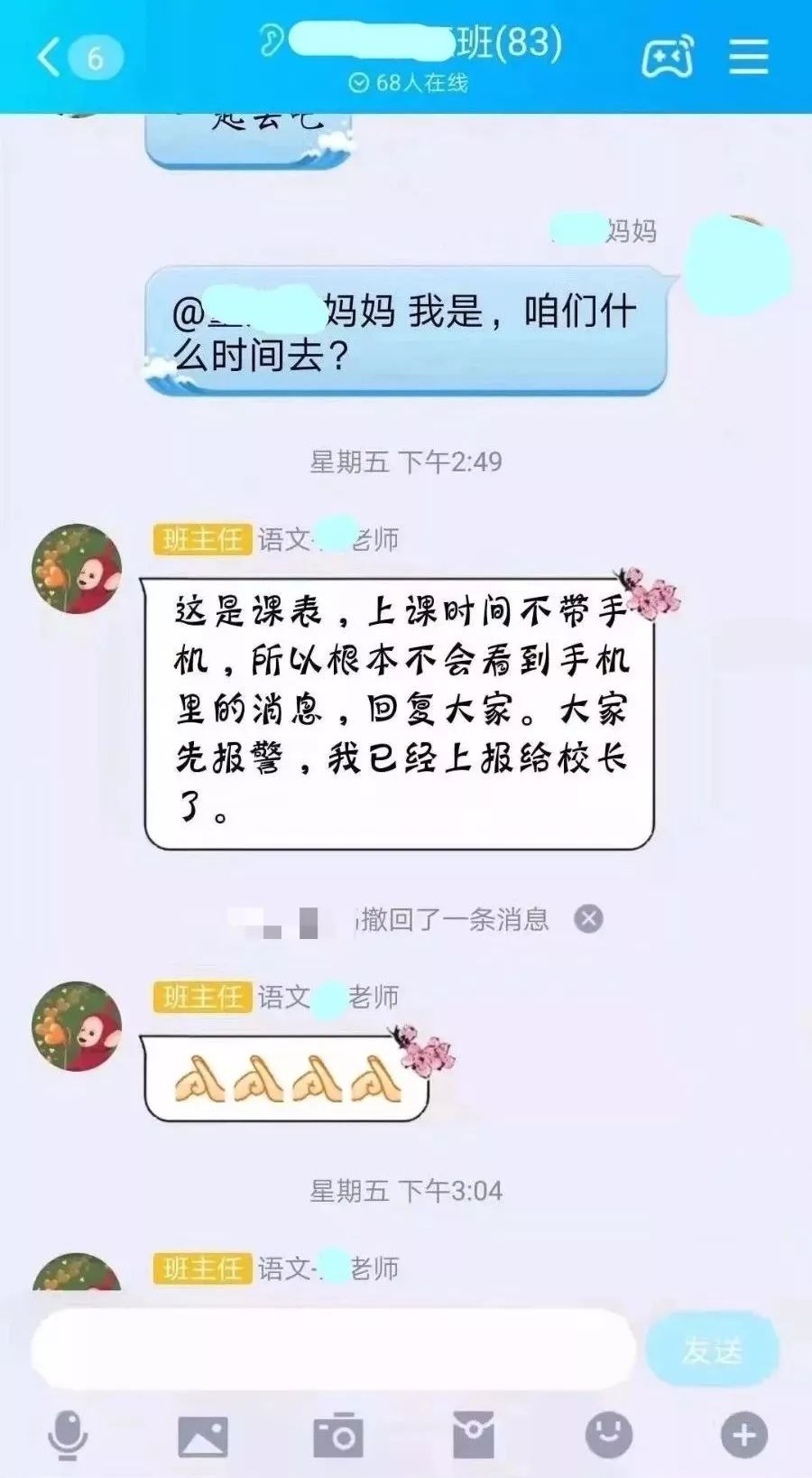 那么,刚才为什么有人有疑问的时候真正的班主任却没有回应呢?原来,班主任也是任课老师刚才他在上课中,无法看到QQ群里的内容这就给了假冒的“班主任”可乘之机