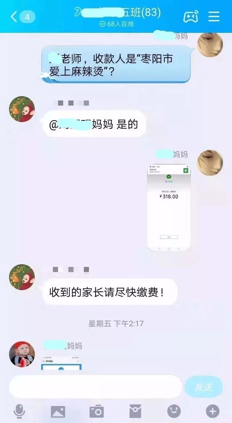 其他家长看到有人转账也都纷纷按要求扫码转账“班主任”还在群里不断发消息要求没有缴费的家长尽快缴费