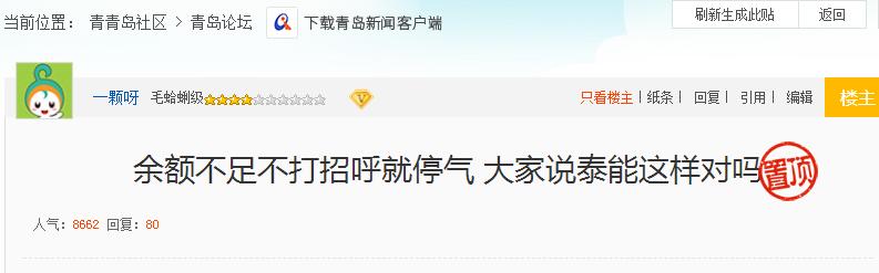 我觉得泰能天然气的这种没钱马上停气的政策,是极端不人性化的。