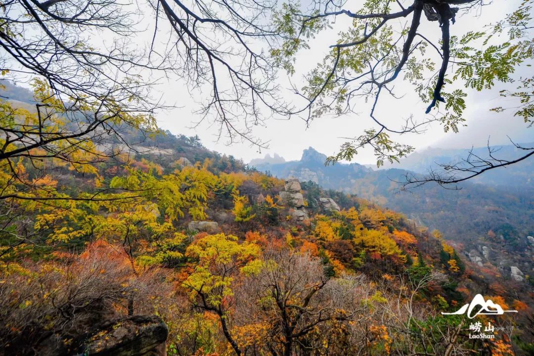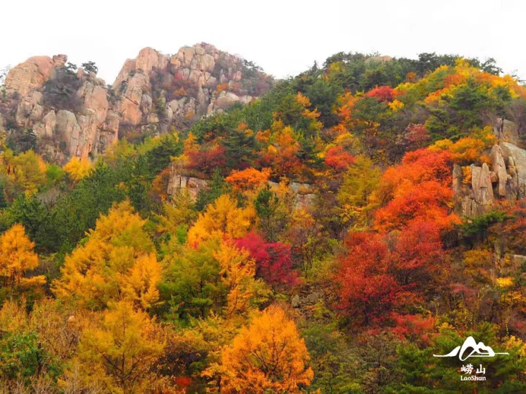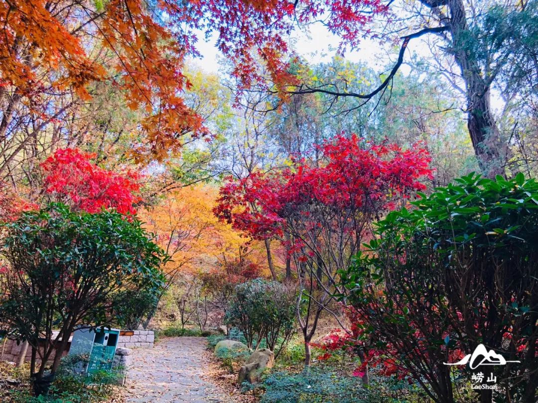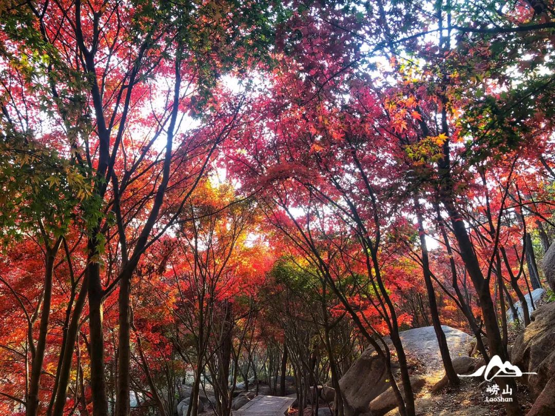 由于崂山独特的地貌结构和优越的气候条件,霜降过后,崂山巨峰红叶也已经开始渐次变色,呈现出五彩斑斓、层林尽染的美景。
