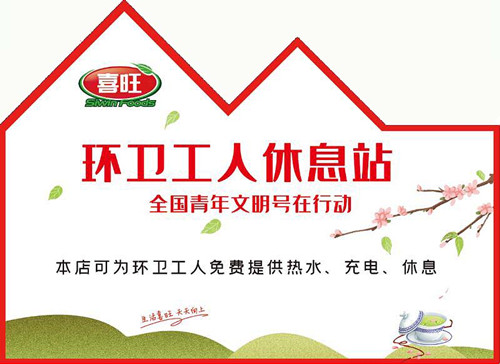 随着冬季的临近,天气逐渐变得寒冷。为积极发挥全国青年文明号的示范作用,喜旺集团于近期在全省各地选出了30多家连锁店面作为环卫工人休息站,并在爱心店面贴有标识,方便环卫工人获取便利。活动一经发起,便引来消费者的一致好评,为社会带来了诸多温暖。