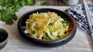 3.然后将调料放进冰箱冷藏室存放半小时后,和撕好的白菜搅拌均匀即可