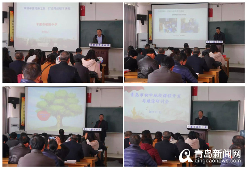 在随后的经验介绍环节中,平度市朝阳中学的李锦山校长、青岛第二十六中学的孙林涛副校长、崂山区育才学校马春雷主任根据自校的发展经验及特色课程开发的具体实施过程与大家做了分享。