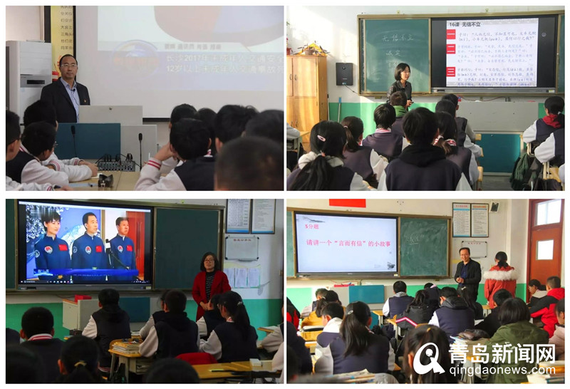 在课例展示环节,凤台中学的朱传宏校长和八年级八班的同学一起学习《未成年人的自我保护》,生动的案例提高了学生们的认知能力,进一步激发了学生们保护自我的意识;青岛市城阳区第八中学的刘春艳老师和八年级三班的同学《无信不立》,温婉的讲授让听课的老师和同学不仅明确了诚信的重要性,还领略到教学的艺术魅力;平度市实验中学的郑瑞英老师与八年级四班的同学《我与理想一起飞》,磅礴大气的视频冲击和身边的榜样振奋着同学们的心灵,拼搏突破腾飞的理想信念深深扎根在每一位同学的心中;平度市新河镇灰埠中学的邵清健老师《言而有信》,轻松愉悦的学习气氛让课老师和同学受益匪浅。
