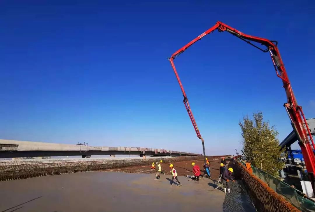 11月22日晚,随着一阵欢呼,青岛新机场连接线互通立交H匝道第十二联混凝土浇筑工作正式完成。至此,这座山东省最大互通式立交桥的主体工程全部完工。
