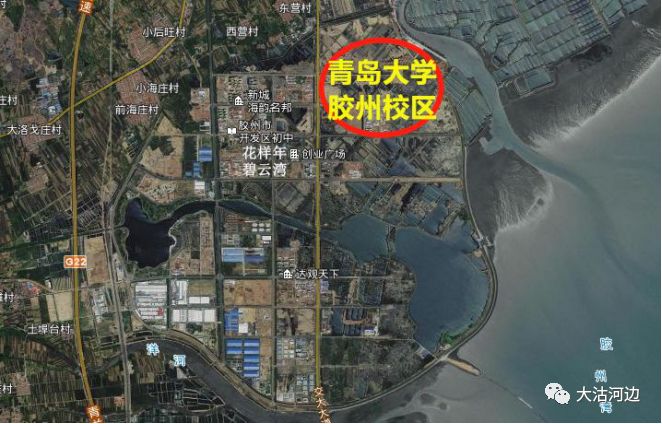 再看看青岛大学胶州校区的区位:靠近大沽河入海口、靠近胶州湾底,是不是也可能有涉海审批的方面吧,让我们一起期待青岛大学胶州校区的开建吧。