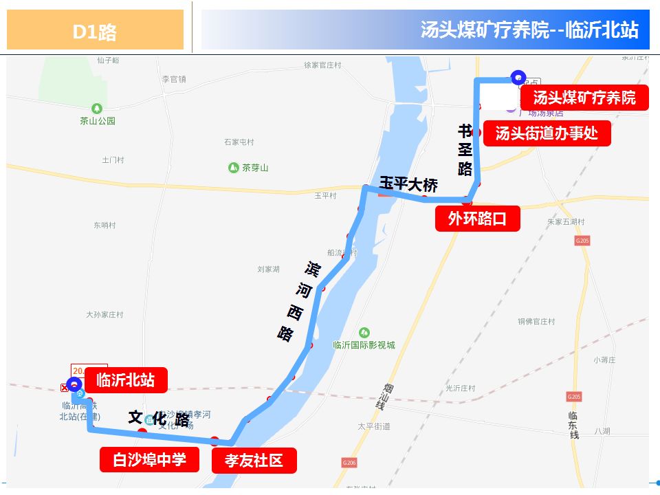 开通汤头煤矿疗养院运行至临沂北站的定制公交线路,主要途经书圣路、玉平大桥、滨河西路、文化路、温凉河路、雄安路、汤河路,中途设置公交站点5处:汤头街道办事处、董官庄、外环路口、孝友社区、白沙埠中学,定制公交线路按里程计价,票价拟定5元,市民可通过“优点出行”小程序购票。